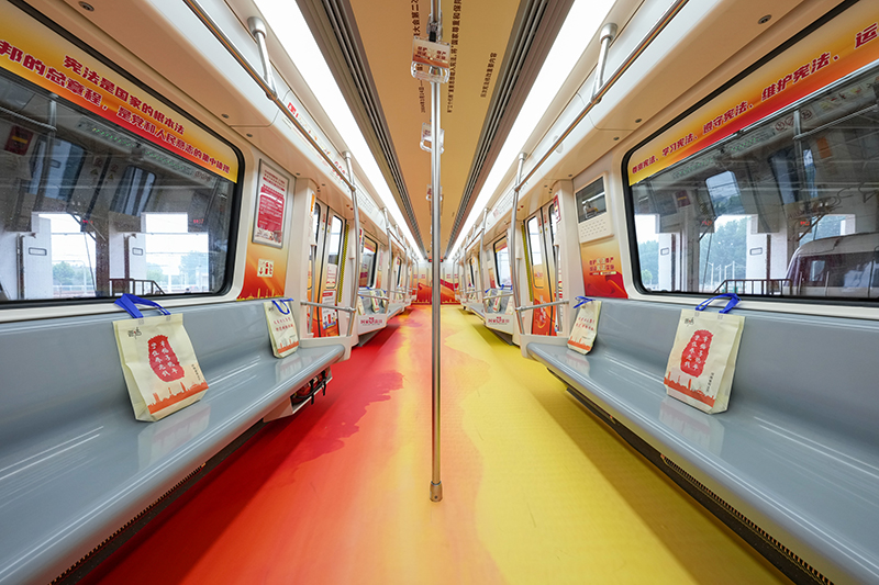 11715鄭州地鐵“法治號(hào)”專列啟用儀式在1號(hào)線鄭東車輛段舉行